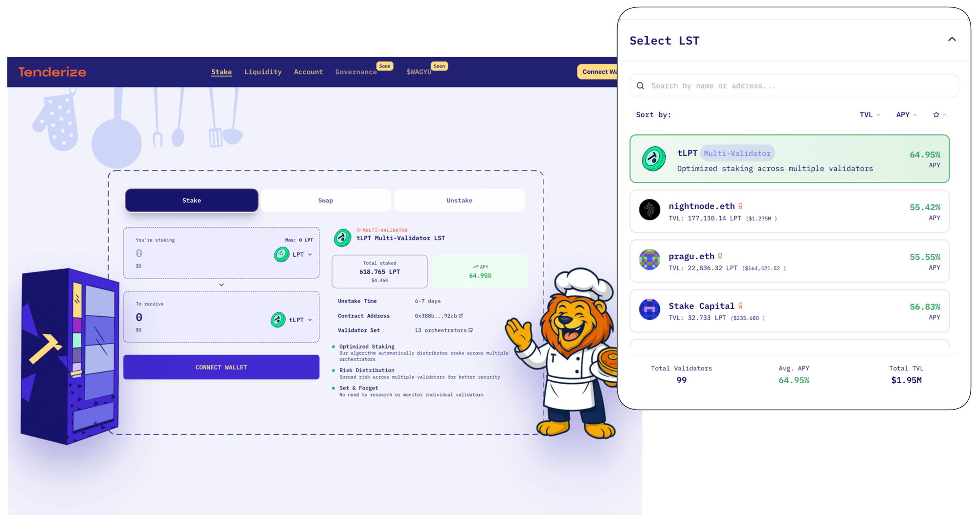 These new LSTs are built upon battle-tested foundations of the Tenderize ecosystem, single-validator LSTs and TenderSwap, acting as a wrapper around them. In fact, anyone can create their own wrapper LSTs just like this one.
