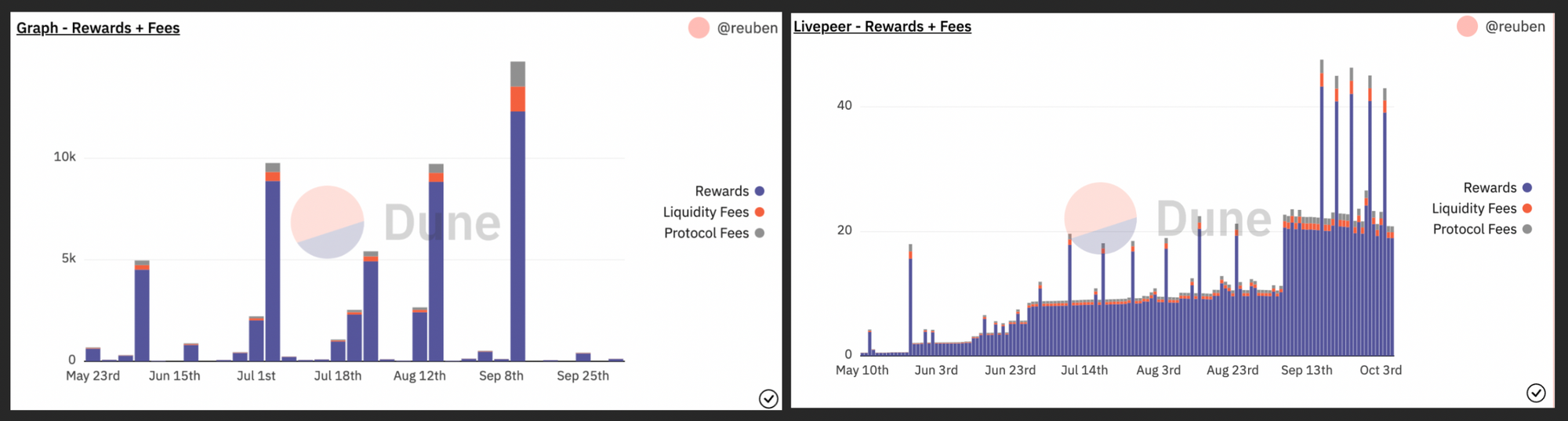 The miscalculation occurred due to not considering the length of a reward period when calculating the average APY over the 30-day time series. The issue is magnified when reward periods are very irregular, like in the case of The Graph, where one large chunk of rewards comes in every ~28 days. We don’t observe the issue with other protocols supported by Tenderize because their reward periods are much more regular.